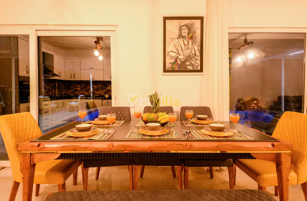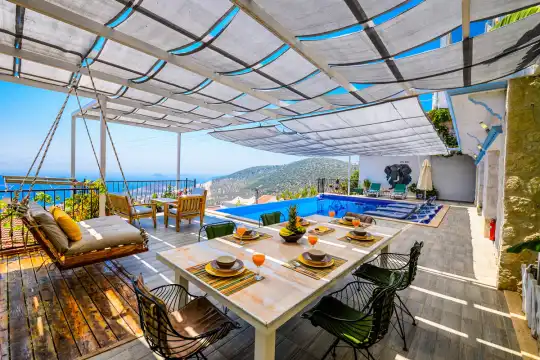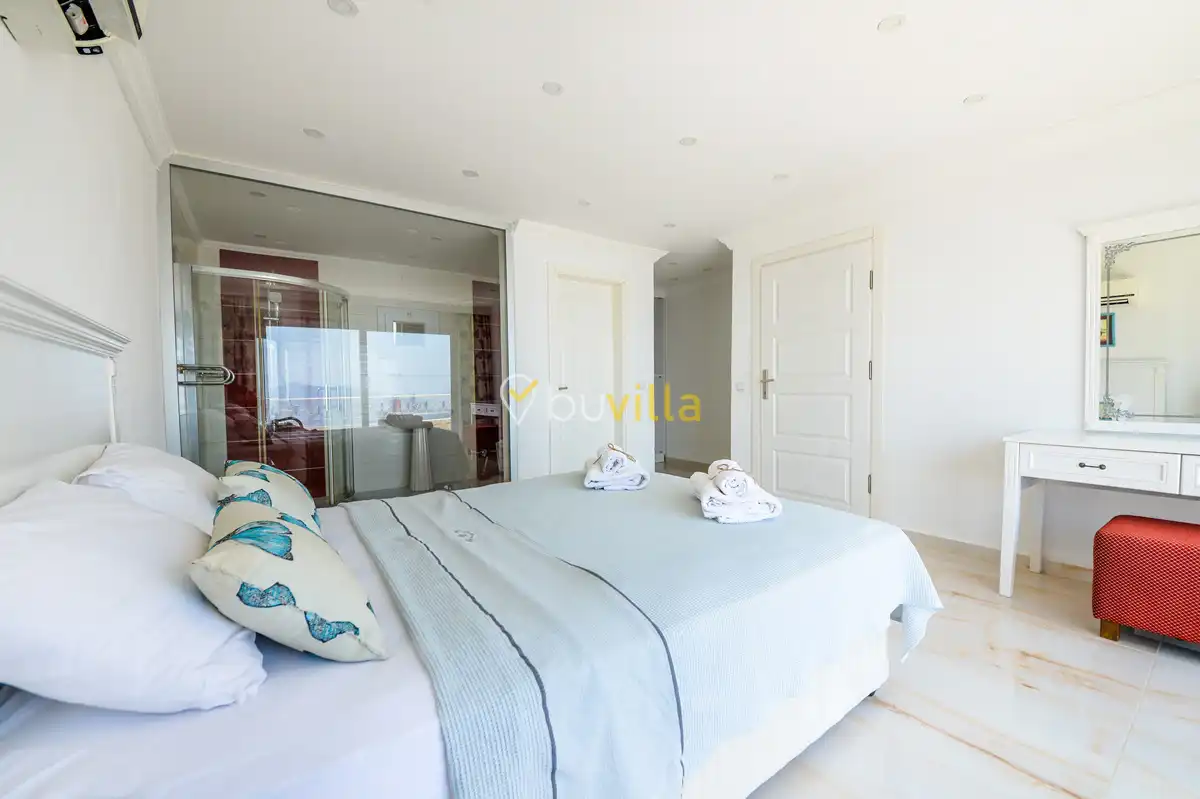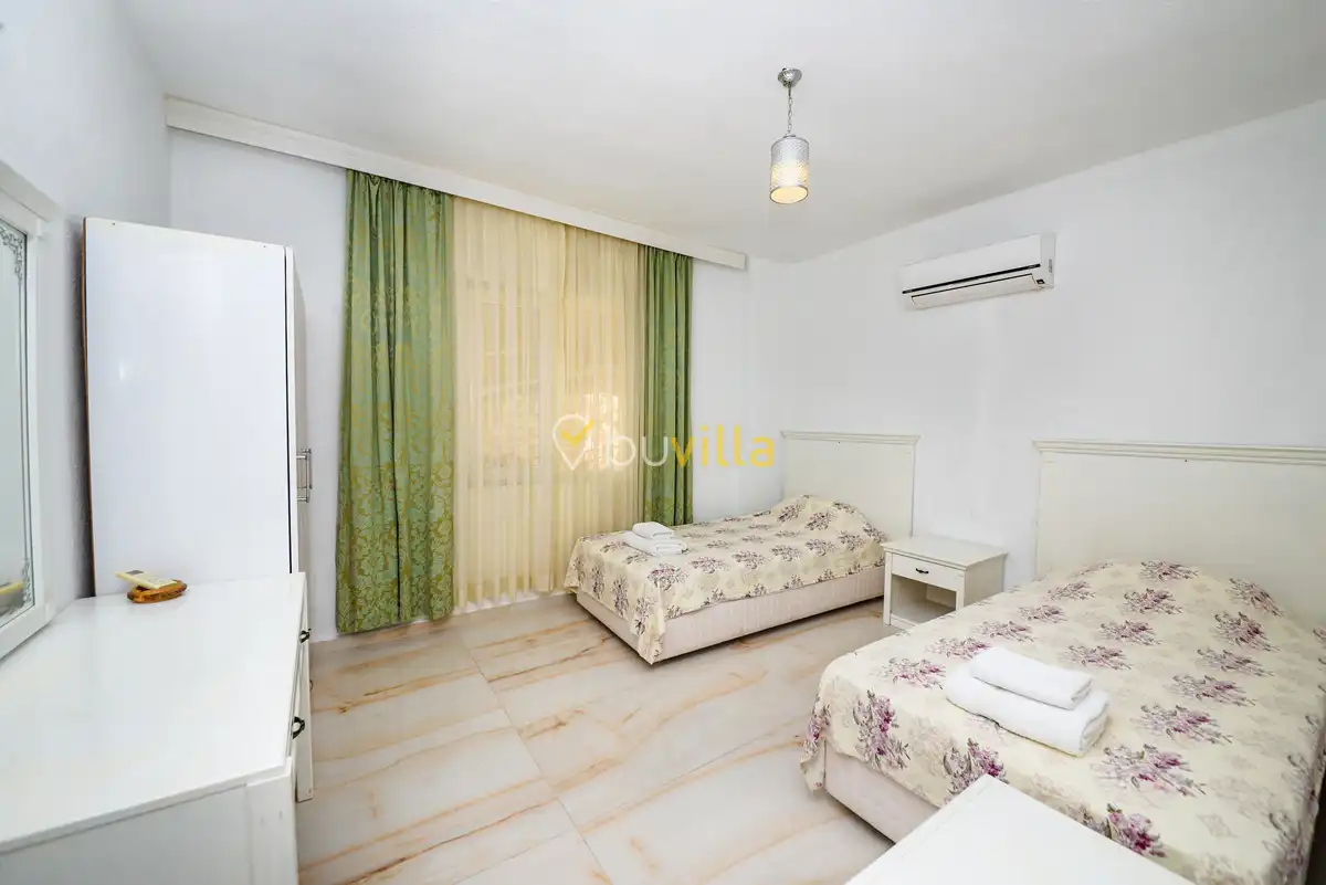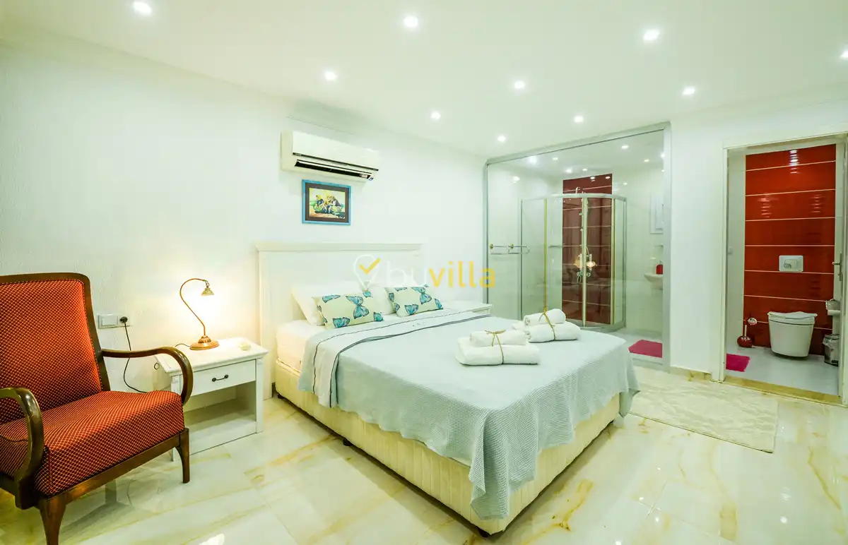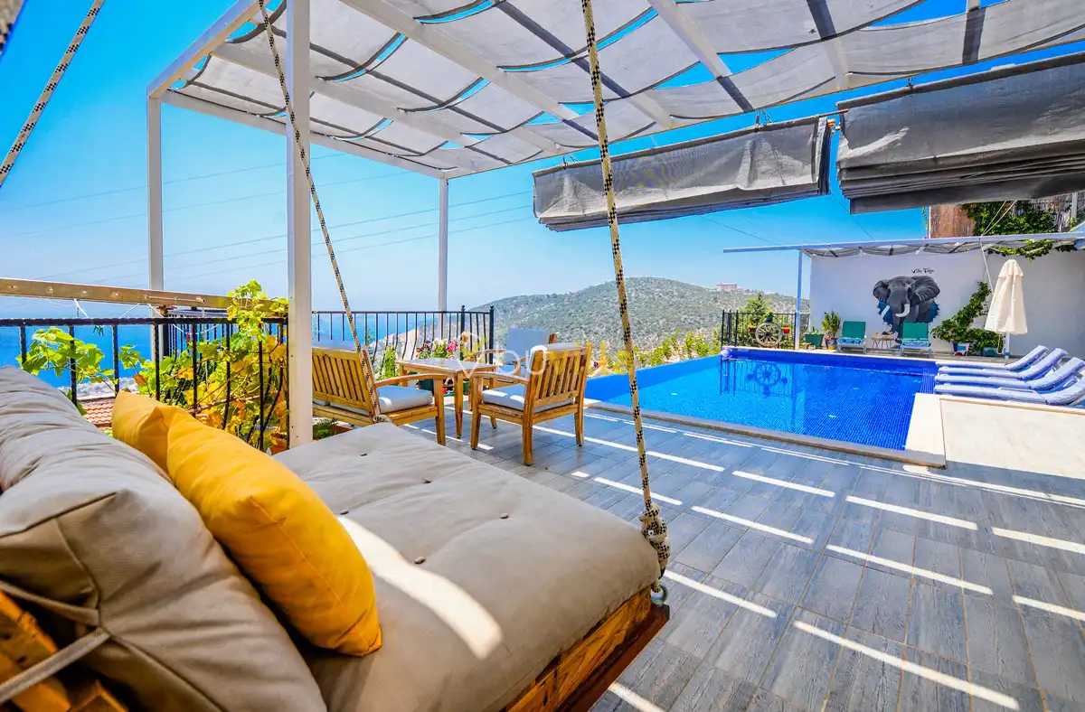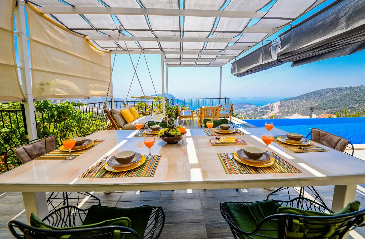 Yamaç bir alanda konumlanan villamız, Kalkan’ı panoramik olarak gören etkileyici bir manzaraya sahiptir. Ferah iç mekânları ve geniş yaşam alanlarıyla konforlu bir konaklama imkânı sağlarken, Akdeniz esintisini doyasıya hissedebileceğiniz verandası tatilinize ayrı bir keyif katar.