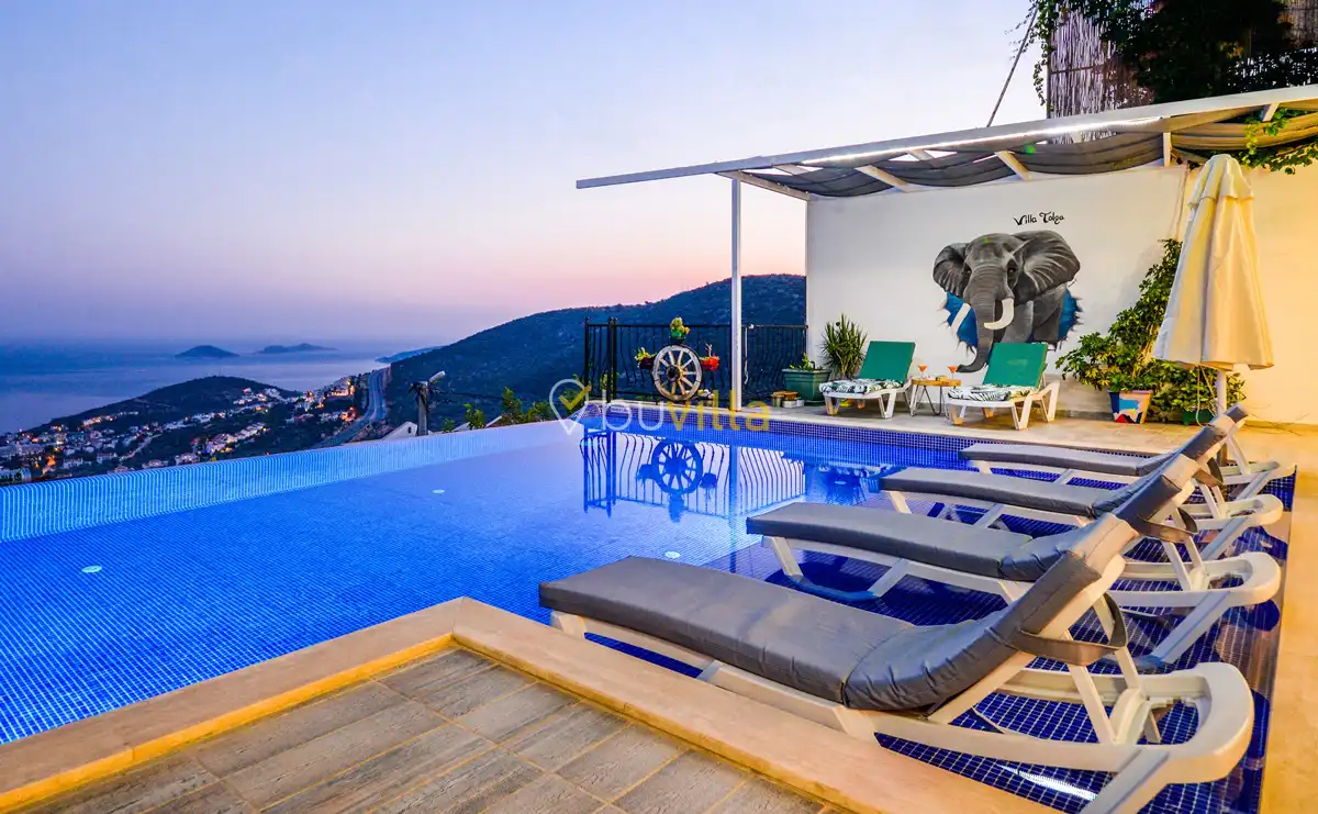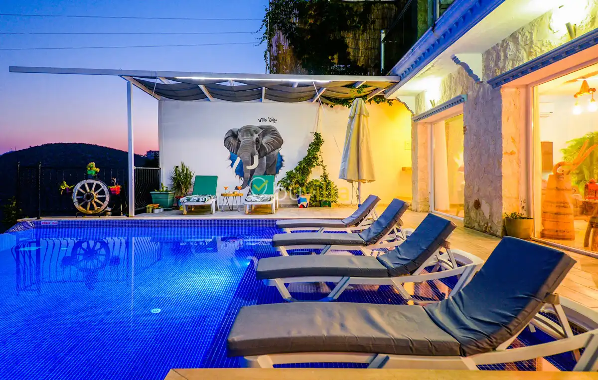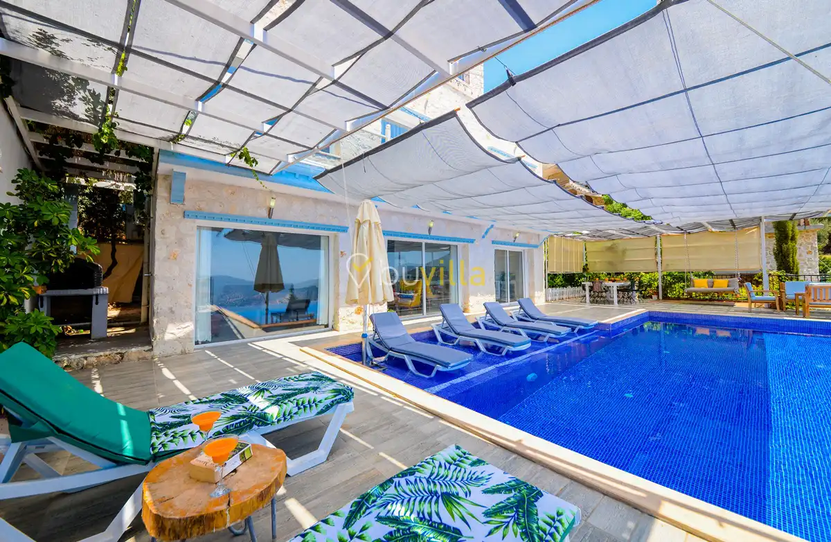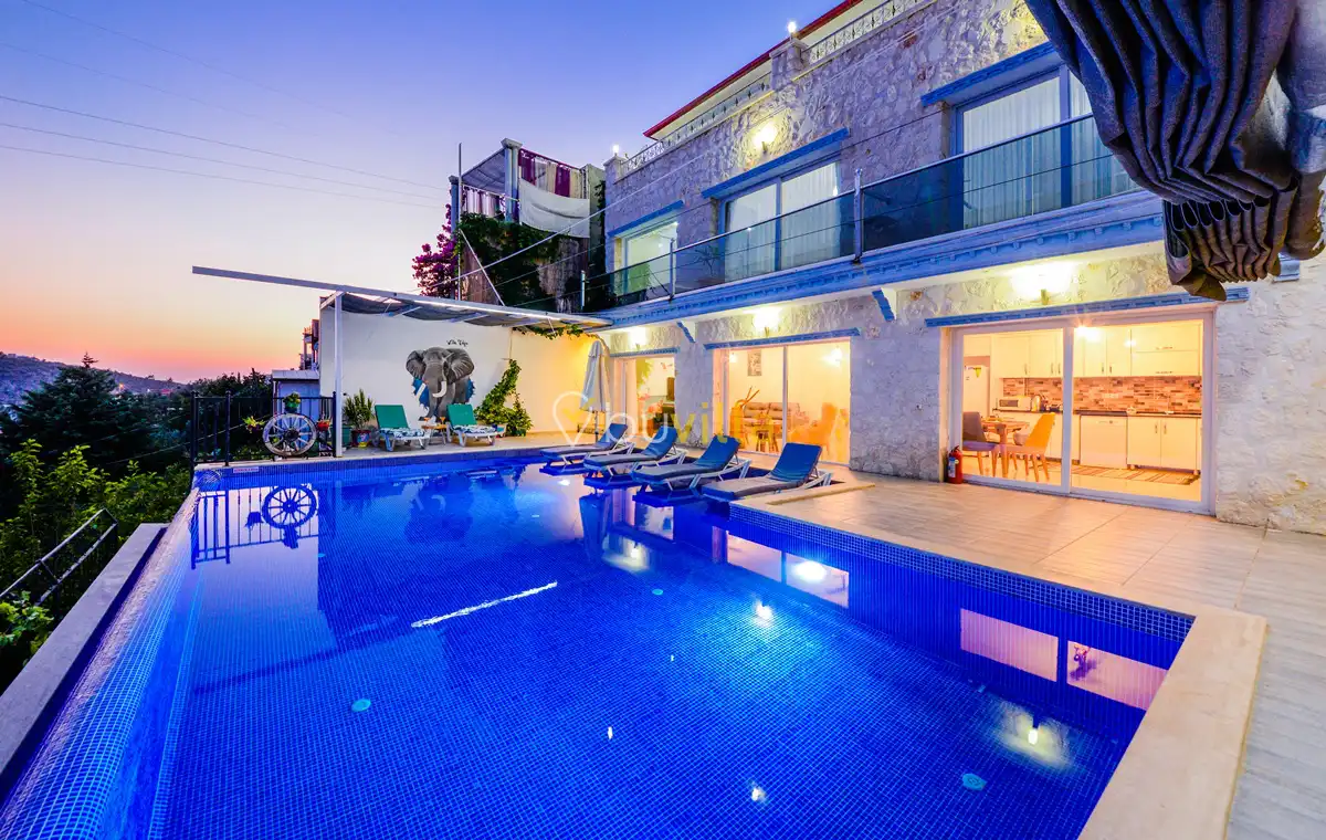 Villa Tolga, Kalkan’ın Akbel mevkiinde, eşsiz manzarası ve özel konumuyla öne çıkan kiralık tatil villalarımız arasında yer almaktadır. 5 yatak odası ve 10 kişilik konaklama kapasitesi sayesinde kalabalık aileler ve arkadaş grupları için ideal bir tatil seçeneği sunar.