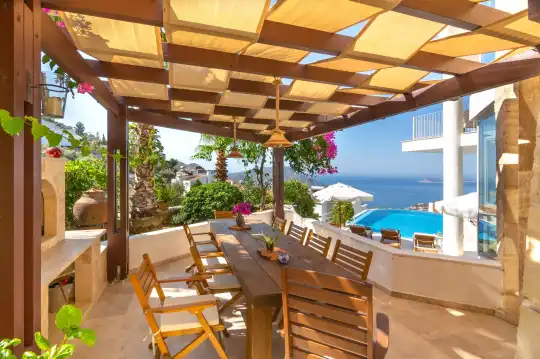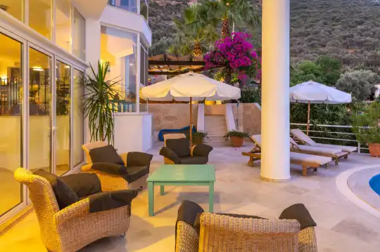 Kiralik Villa Toros, Kalkan Kiziltas mevkiinde yer almakta olup 5 yatak odali 10 kisiye kadar konaklama kapasitesine sahiptir. Kiralik Villa Kalkan sehir merkezine yakin mesafede olup villamizin özel yüzme havuzunun deniz manzarasi bulunmaktadir. Amerikan mutfaginda ihtiyaç duyabileceginiz ekipmanlar yer almakta olup konforlu mobilyalarla dizayn edilmis salonu hizmetinizdedir.
