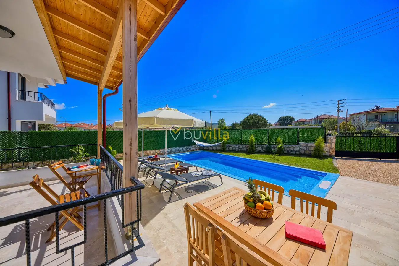 Lüks ve şık detaylarla dizayn edilmiş iç mekânı sayesinde konforlu bir konaklama deneyimi yaşayabilirsiniz. Geniş bahçesinde yer alan hamakta dinlenerek yılın tüm yorgunluğunu atabilir, doğa ile iç içe keyifli anlar geçirebilirsiniz.