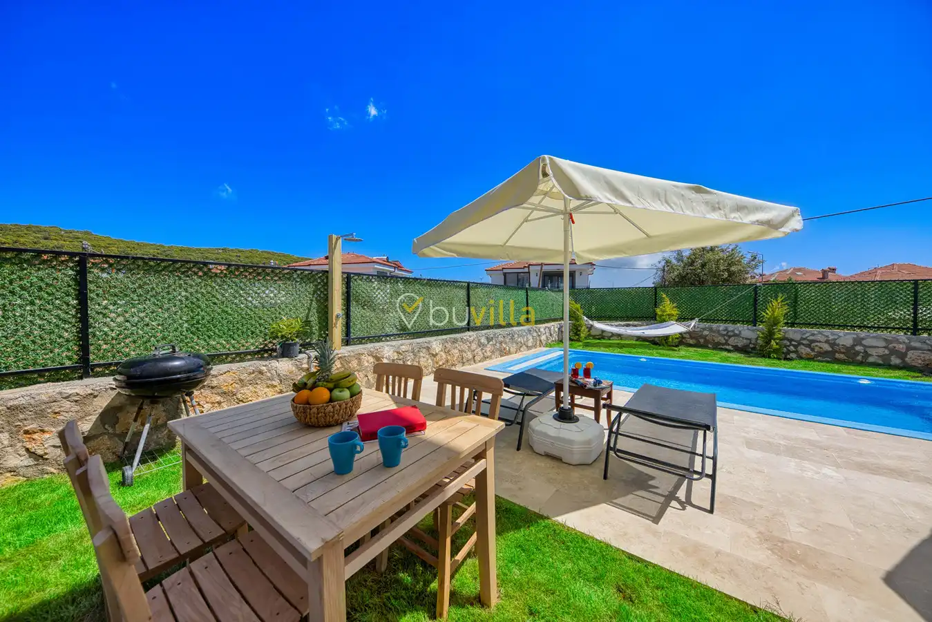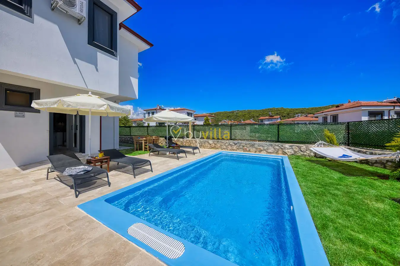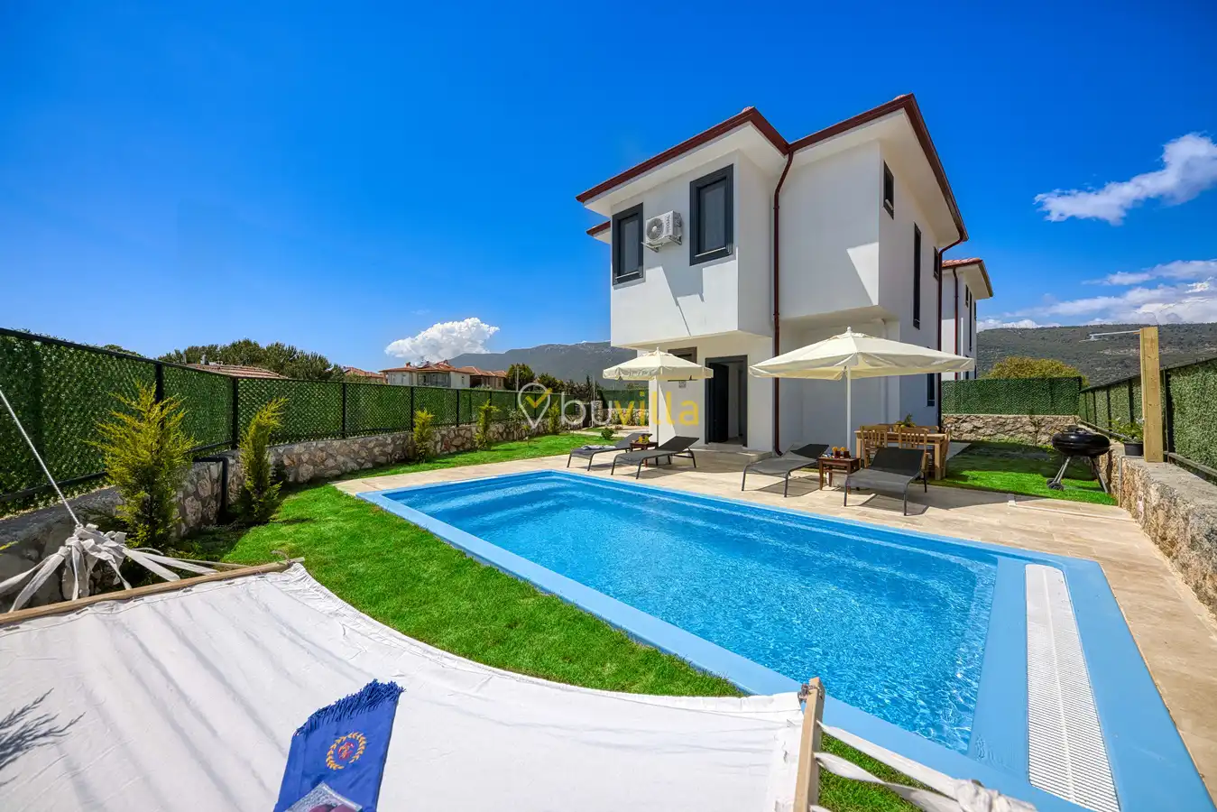 Lüks ve şık detaylarla dizayn edilmiş iç mekânı sayesinde konforlu bir konaklama deneyimi yaşayabilirsiniz. Geniş bahçesinde yer alan hamakta dinlenerek yılın tüm yorgunluğunu atabilir, doğa ile iç içe keyifli anlar geçirebilirsiniz.
