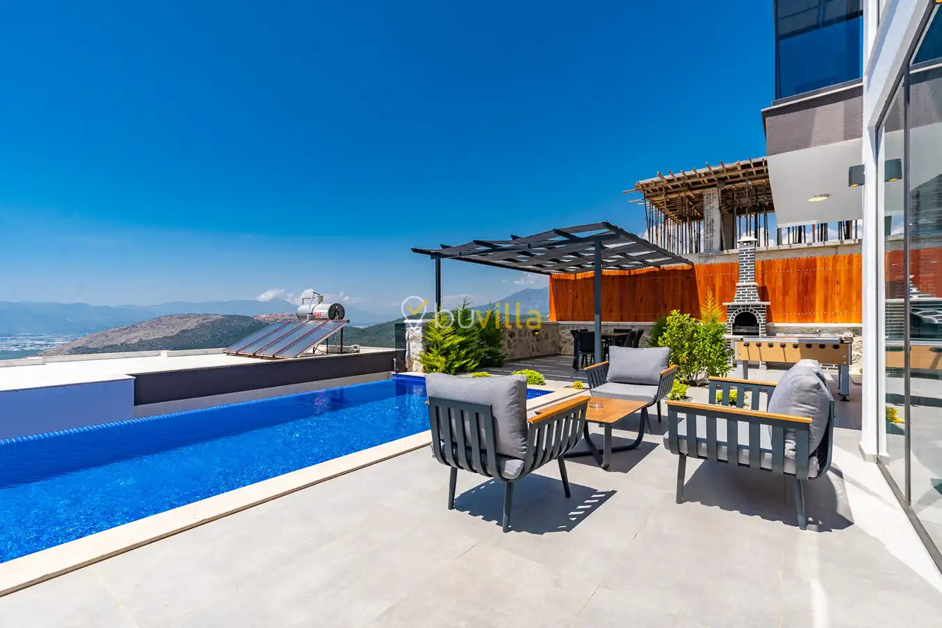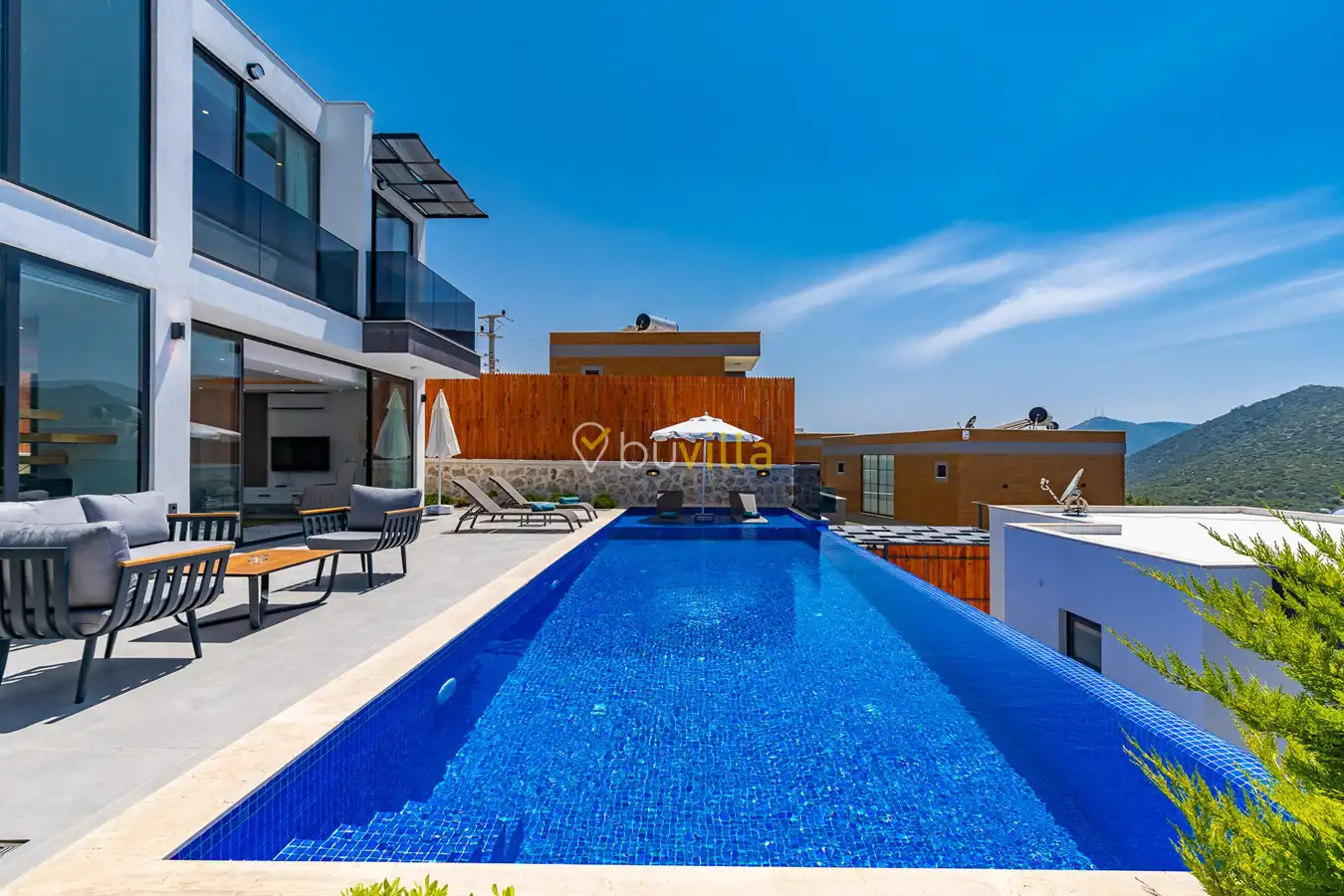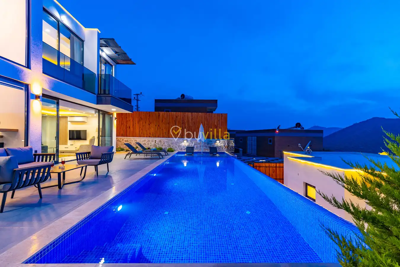 Kalkan’ın eşsiz doğasıyla öne çıkan bölgelerinden Kalkan’da konumlanan Villa Uçar 1, 2 yatak odası ve etkileyici doğa manzarasıyla konforlu bir tatil deneyimi sunan özel bir villadır. 2022 yılı Ağustos ayı itibarıyla hizmete açılan villamız, modern mimarisi ve özenle tasarlanmış iç-dış dekorasyonuyla misafirlerin tüm ihtiyaçlarına cevap verecek şekilde hazırlanmış