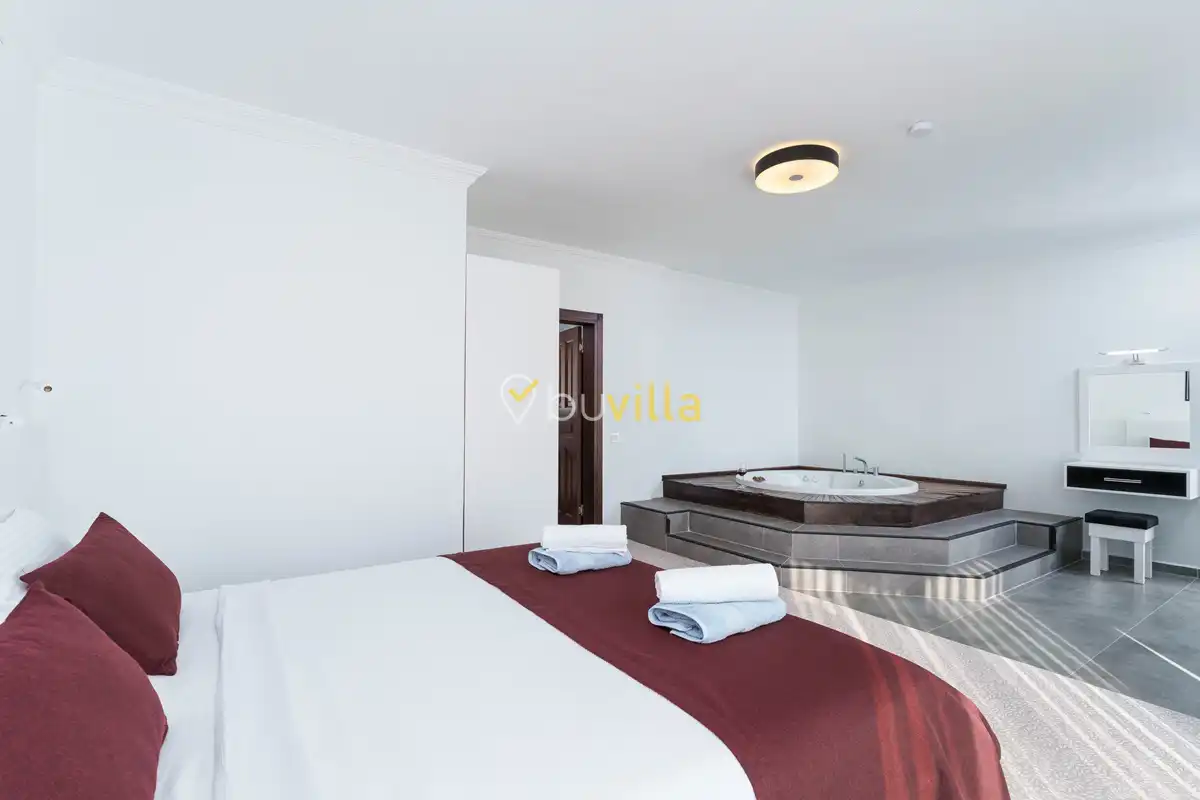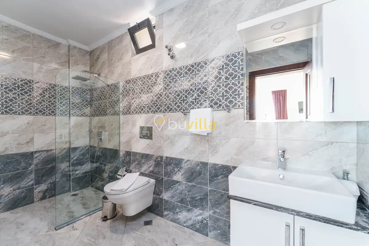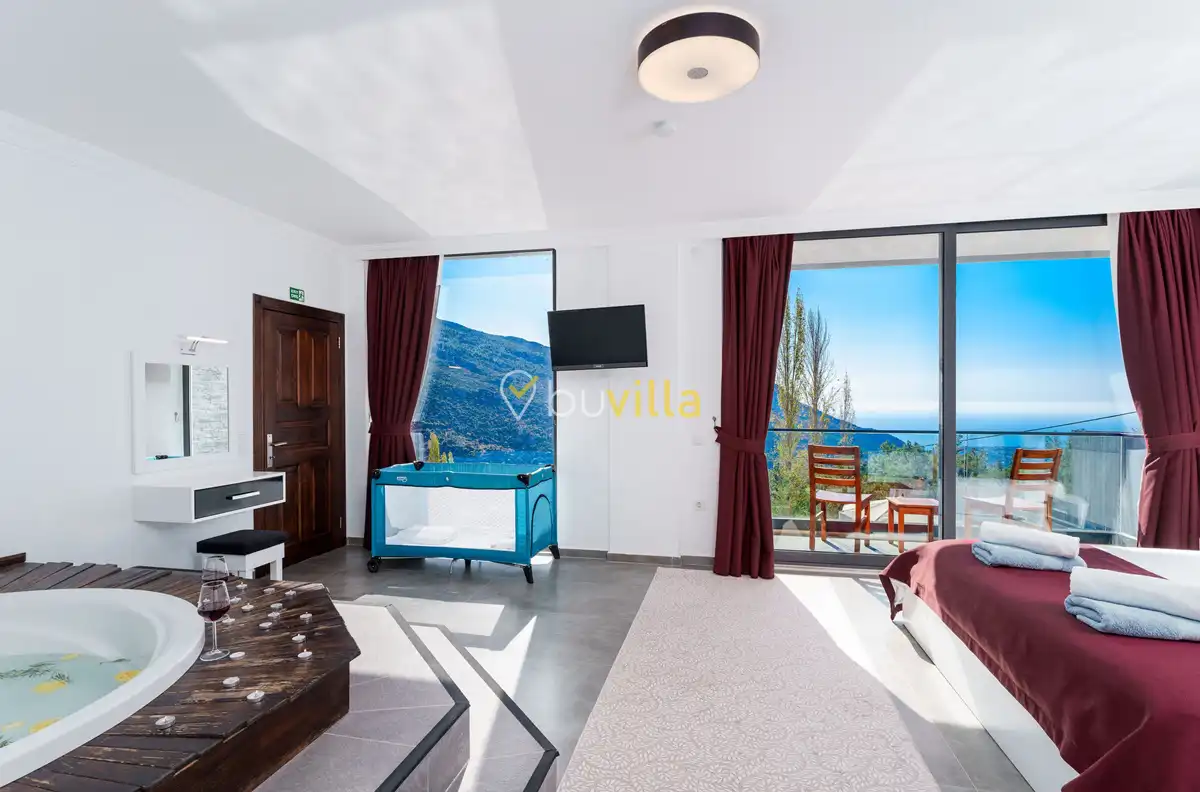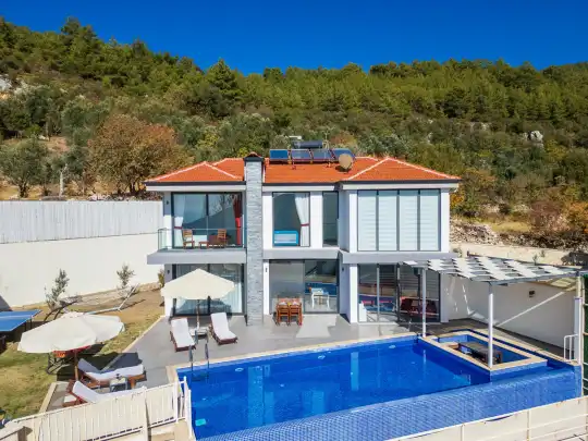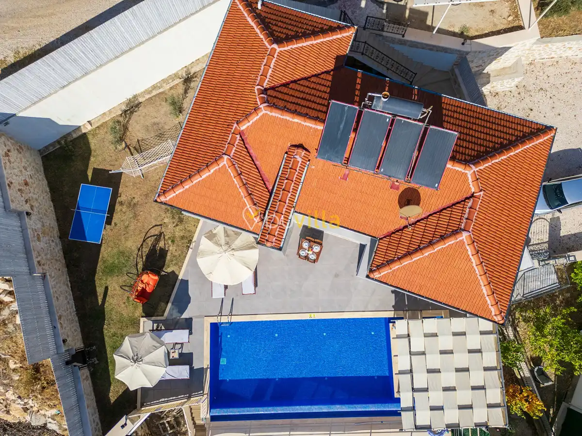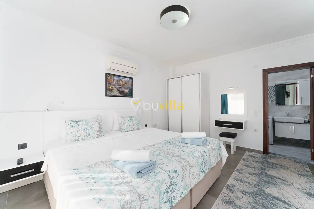 Villanın özel yüzme havuzu, dışarıdan görünmeyecek şekilde konumlandırılmış olup mahremiyete önem veren misafirler için rahat bir kullanım sunar. Yatak odalarından birinde bulunan jakuzi, tatilinize keyifli ve dinlendirici bir ayrıcalık katar.