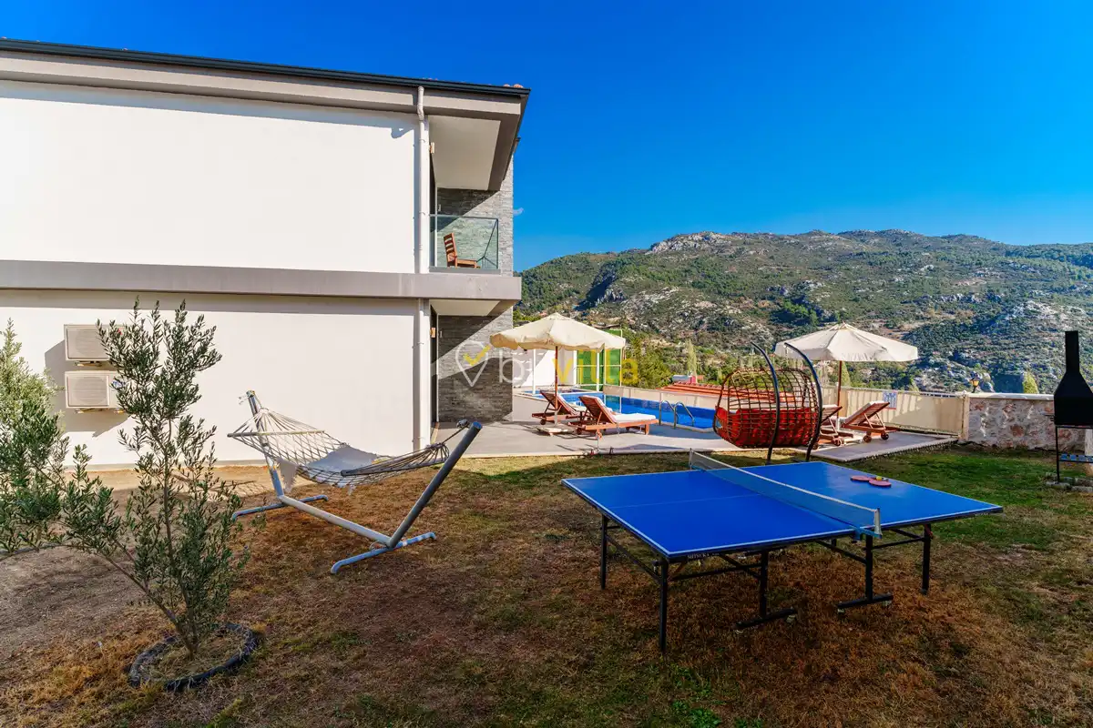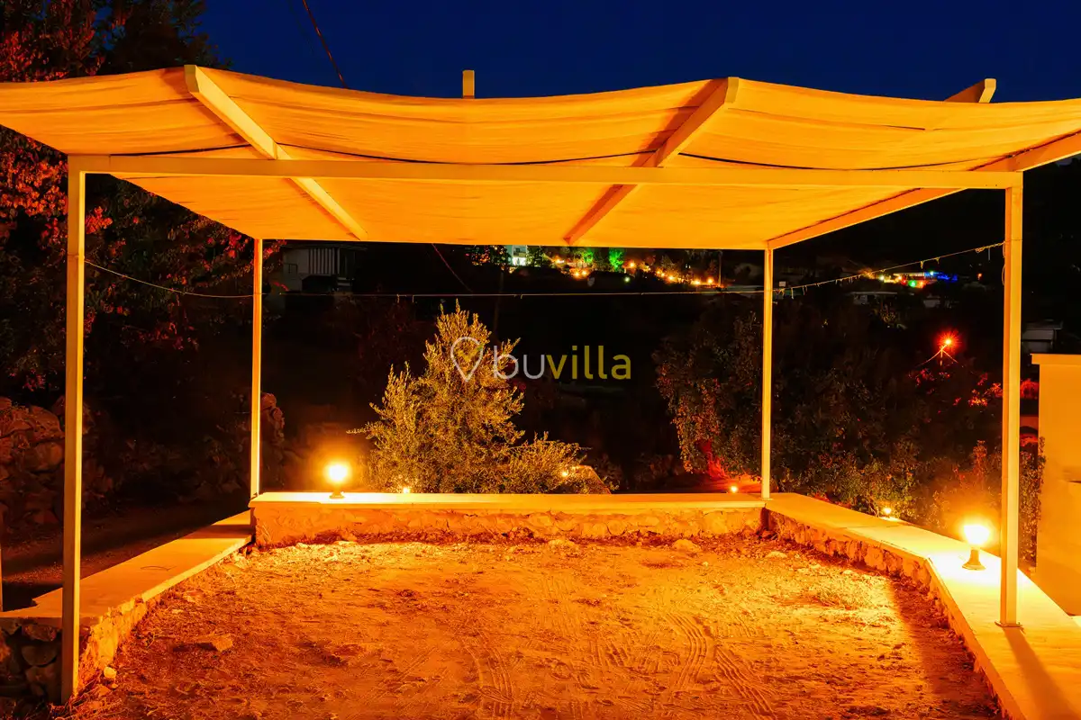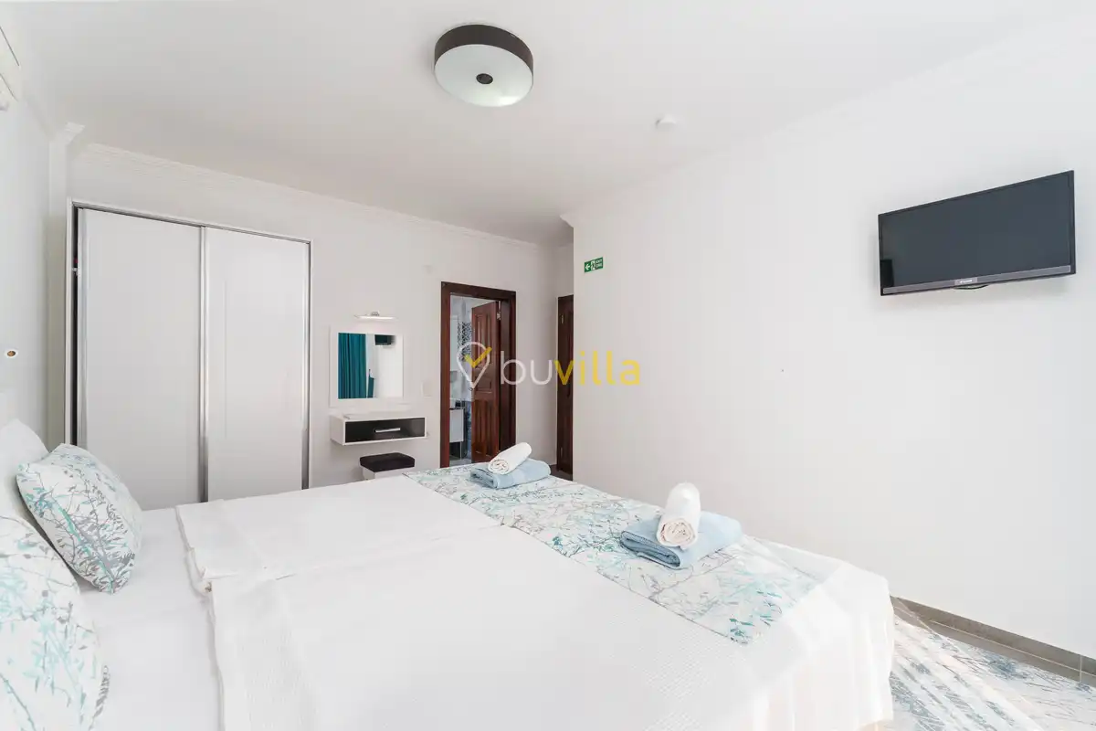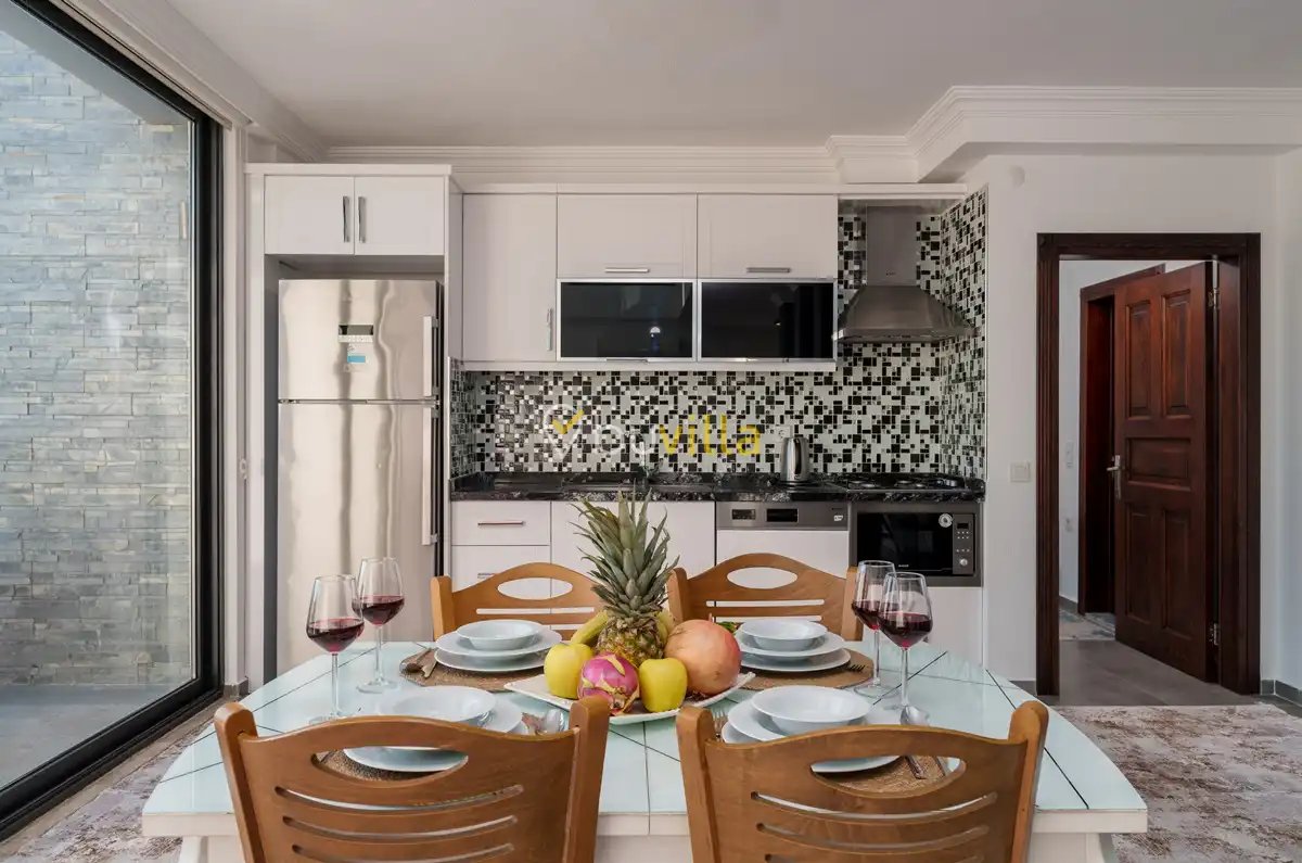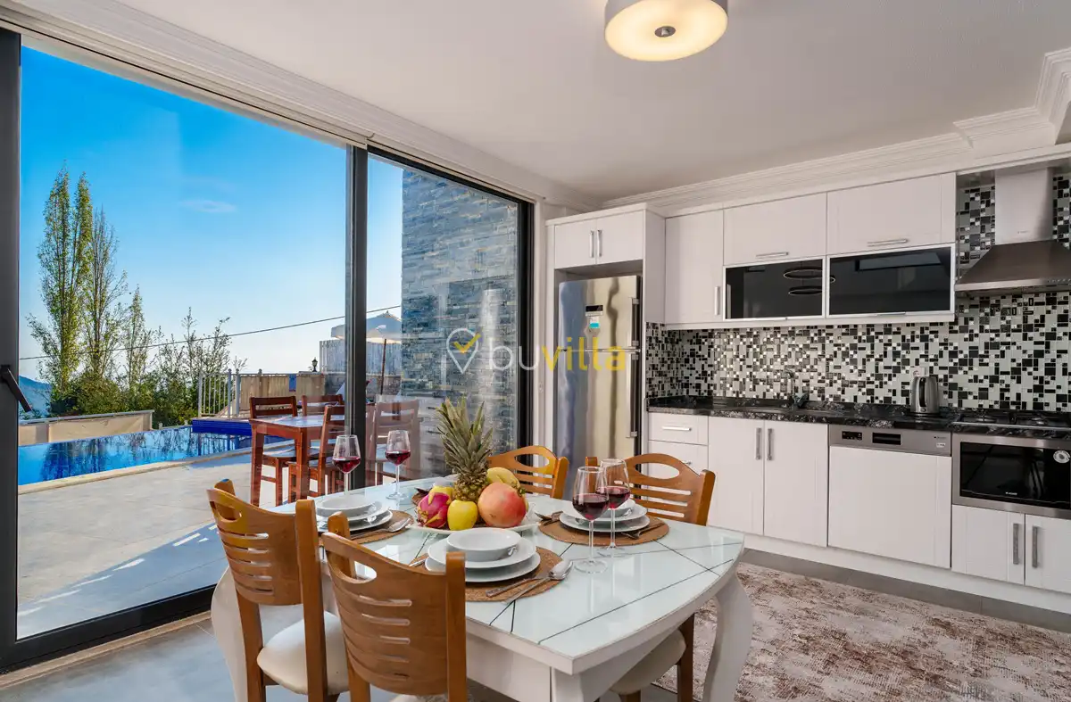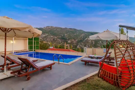 Villanın özel yüzme havuzu, dışarıdan görünmeyecek şekilde konumlandırılmış olup mahremiyete önem veren misafirler için rahat bir kullanım sunar. Yatak odalarından birinde bulunan jakuzi, tatilinize keyifli ve dinlendirici bir ayrıcalık katar.