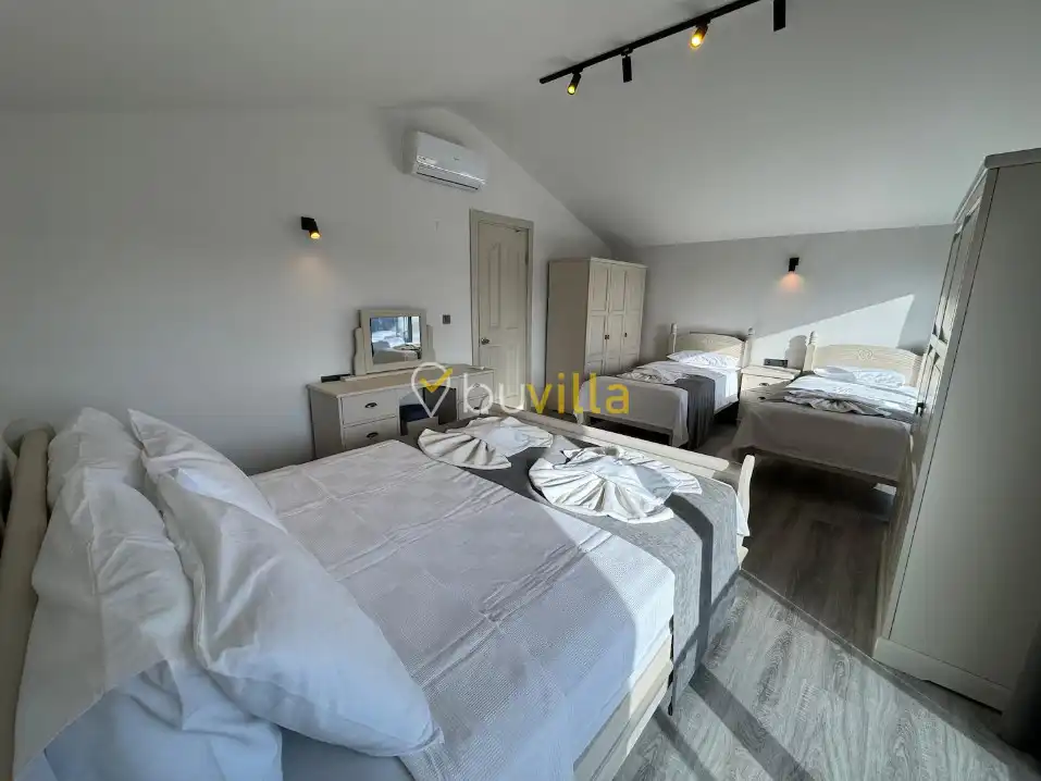 5 yatak odası ve 3 banyo ile toplam 12 kişilik konaklama kapasitesine sahip olan villamız, bölgenin en geniş bahçelerinden birine sahip olmasıyla öne çıkmaktadır. Aileniz ve sevdiklerinizle birlikte keyifli vakit geçirebileceğiniz bahçe alanı, rahat ve özgür bir tatil ortamı sağlar.