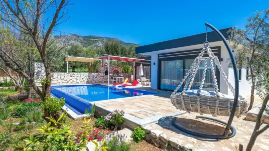 Kalkan’ın Üzümlü bölgesinde konumlanan Villa Yağmur Üzümlü, 2021 yılında tamamlanmış modern bir balayı villasıdır. Tek yatak odası ve 2 kişilik konaklama kapasitesiyle romantik bir tatil arayan çiftler için özel olarak tasarlanmıştır.