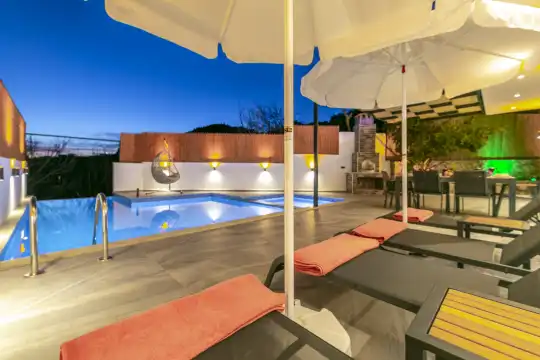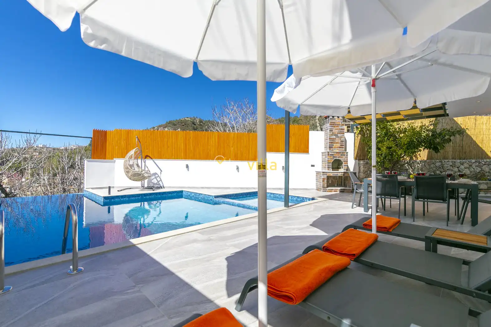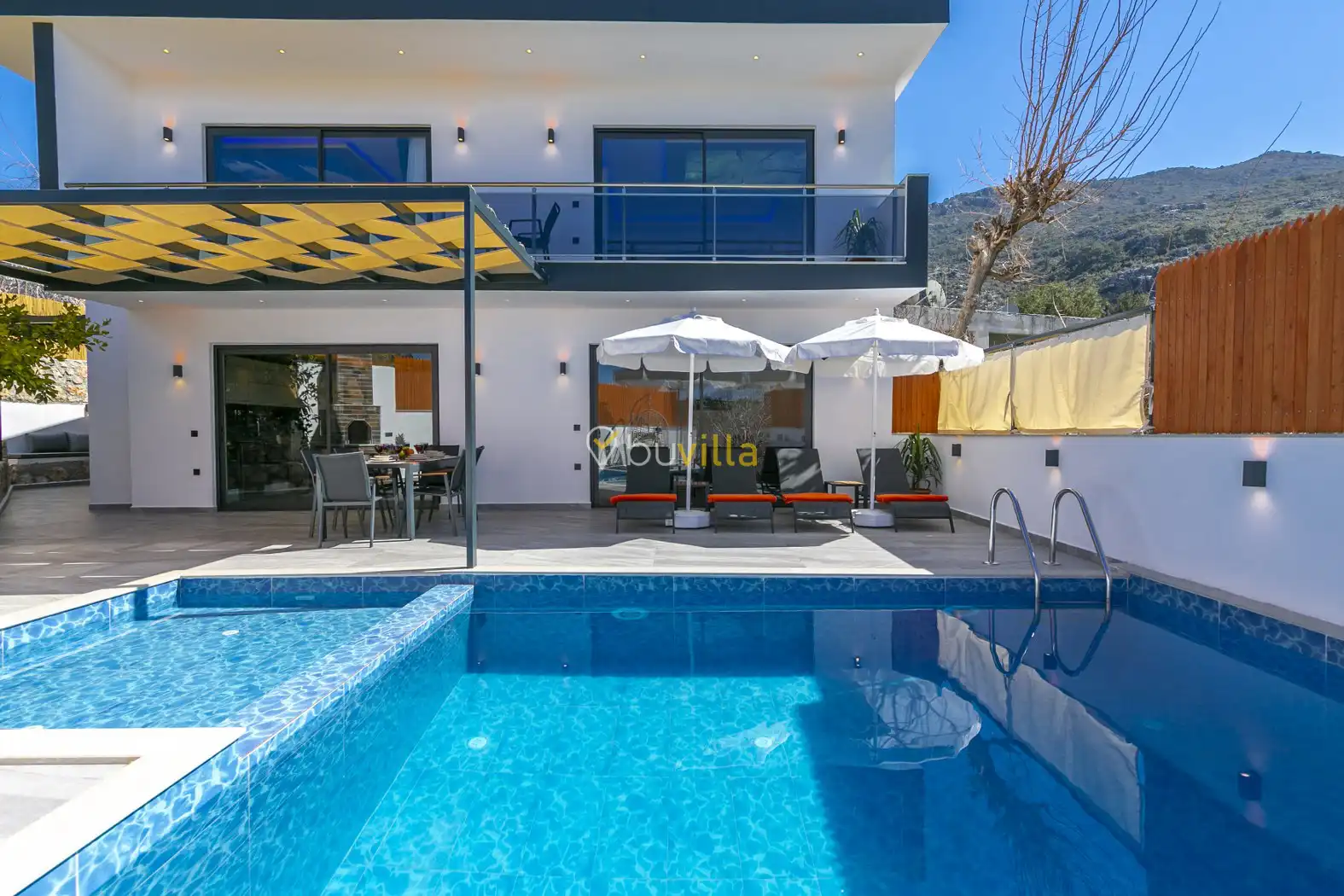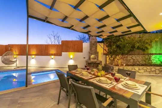 2 yatak odalı ve 5 kişilik konaklama kapasitesine sahip olan villa, geniş aileler ve arkadaş grupları için ideal bir seçenektir. Korunaklı havuzu ve dışarıdan görünmeyen özel bahçesi sayesinde, gözlerden uzak bir tatil geçirmek isteyen misafirler için keyifli bir ortam sunmaktadır. Ayrıca ebeveyn yatak odasında yer alan 2 kişilik jakuzi, ekstra konfor sağlamaktadır.