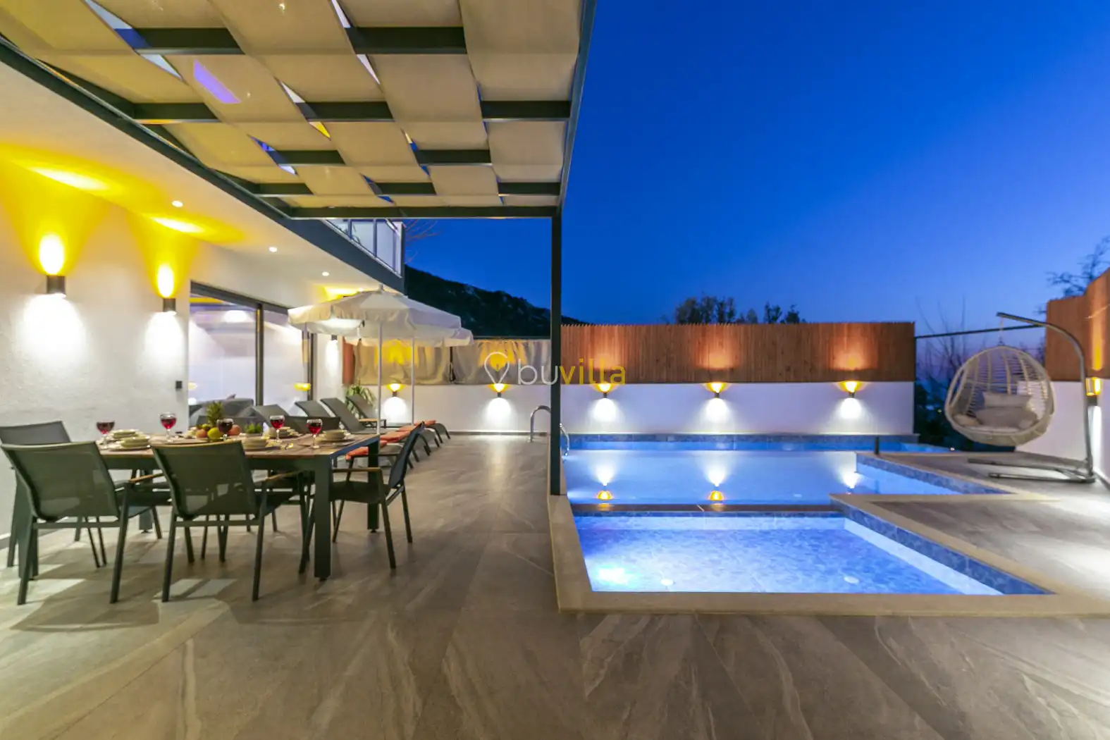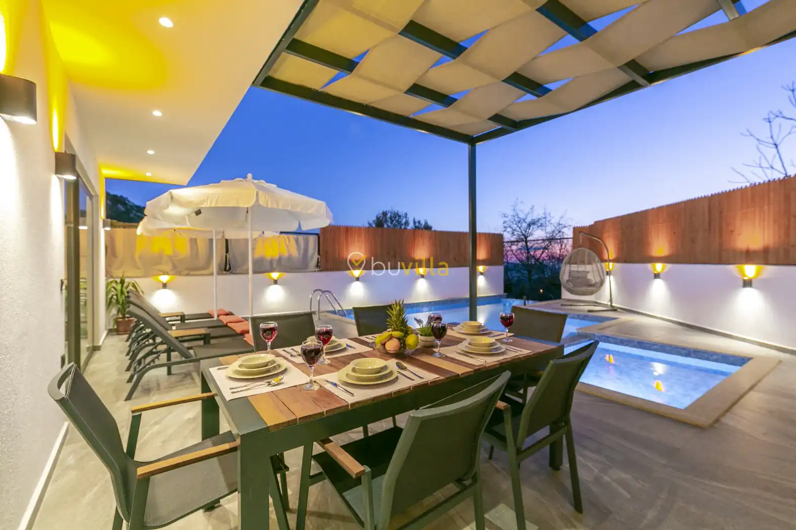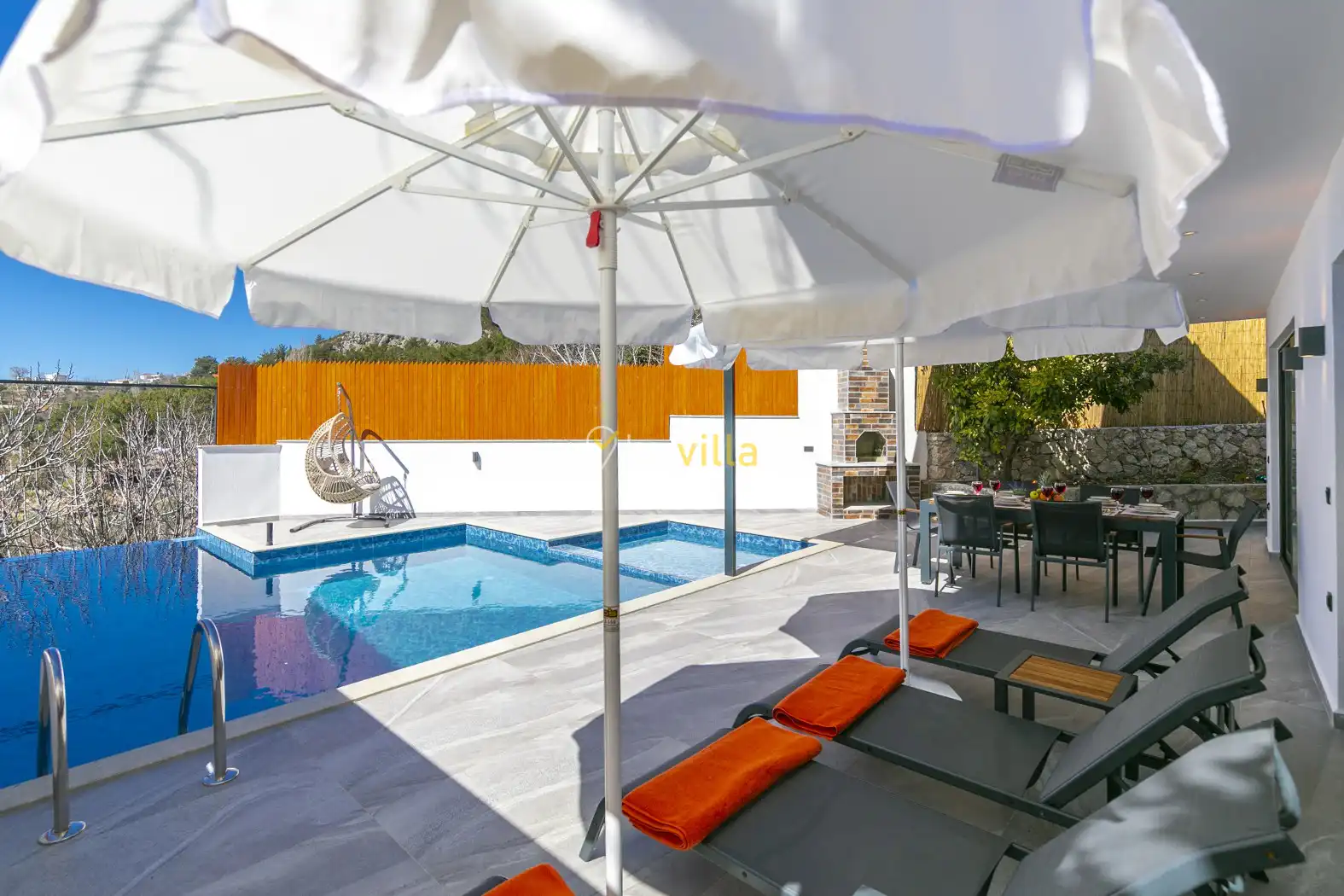 2 yatak odalı ve 5 kişilik konaklama kapasitesine sahip olan villa, geniş aileler ve arkadaş grupları için ideal bir seçenektir. Korunaklı havuzu ve dışarıdan görünmeyen özel bahçesi sayesinde, gözlerden uzak bir tatil geçirmek isteyen misafirler için keyifli bir ortam sunmaktadır. Ayrıca ebeveyn yatak odasında yer alan 2 kişilik jakuzi, ekstra konfor sağlamaktadır.
