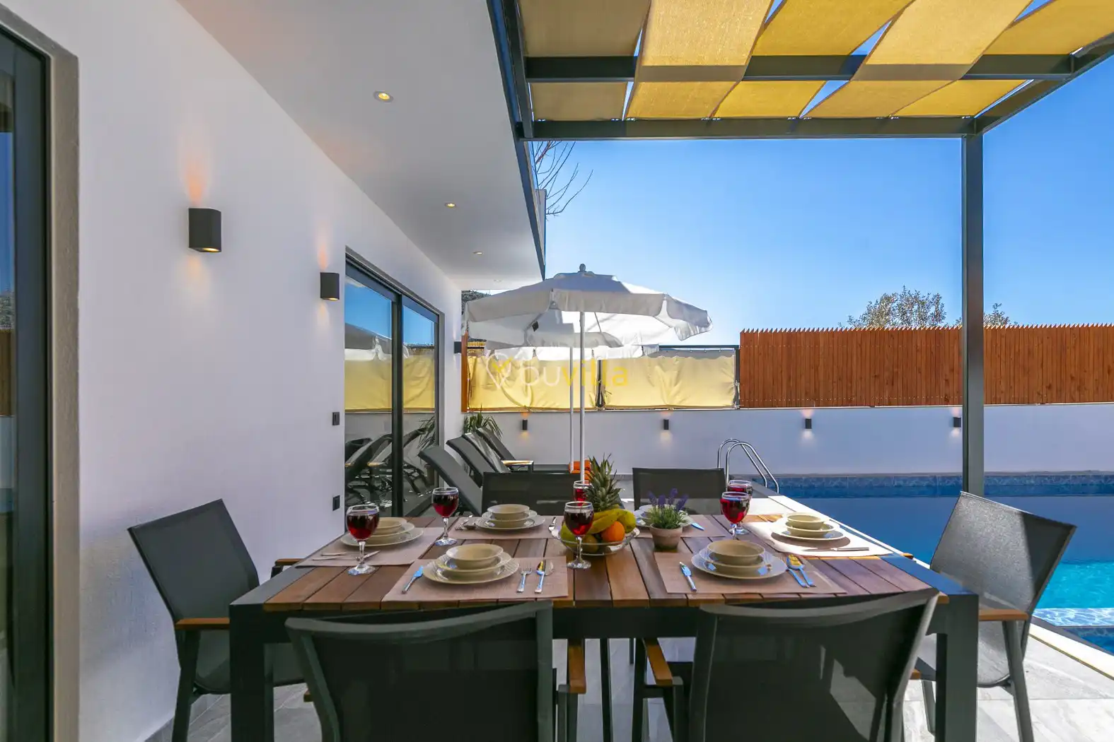 Villa Yeşim Duo, Kalkan’ın doğal güzellikleriyle ünlü İslamlar Mevkii’nde yer alan, sessizlik ve huzur arayan misafirler için özel olarak tasarlanmış kiralık tatil villasıdır.