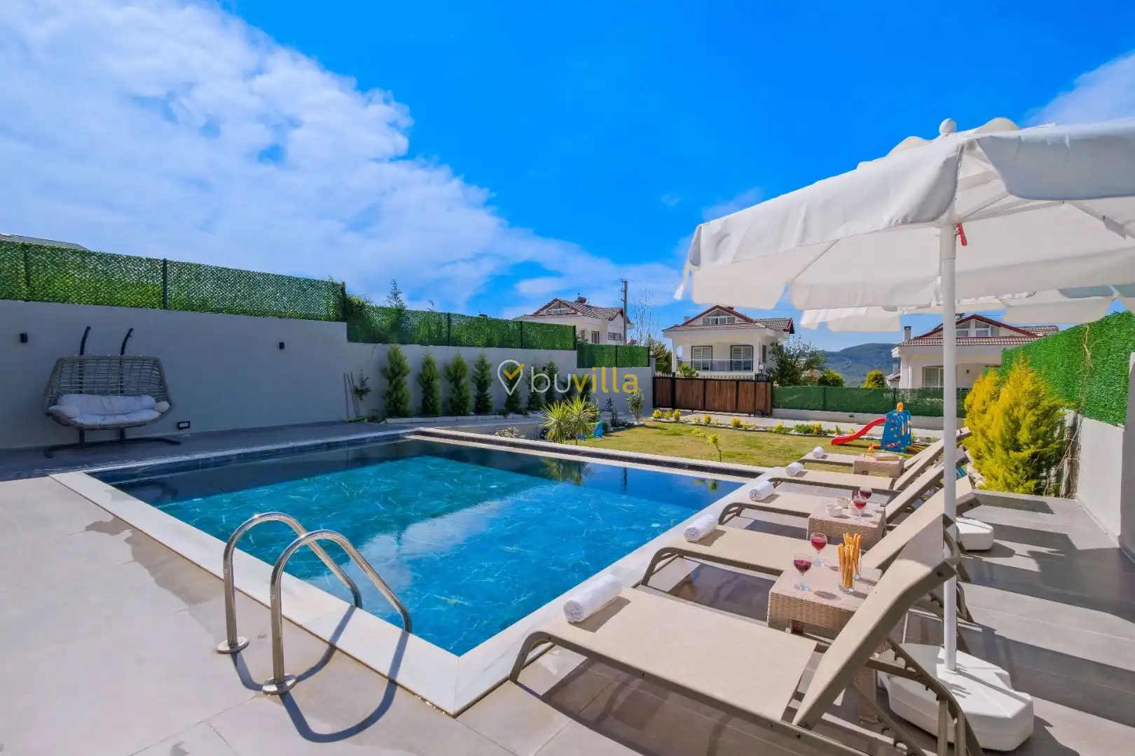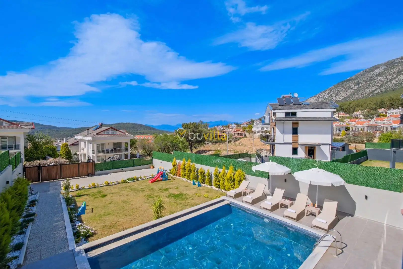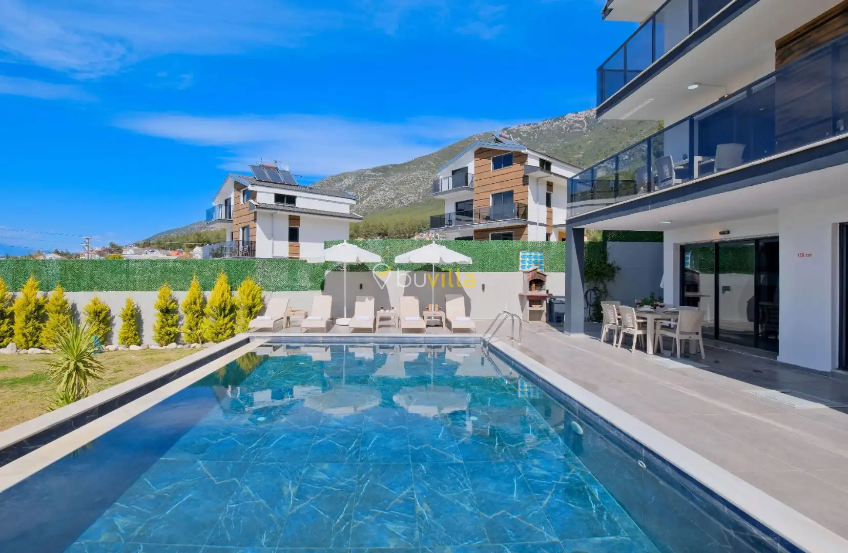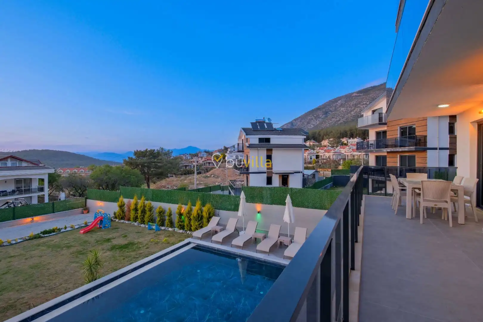 Fethiye’nin popüler tatil bölgelerinden Ovacık mevkiinde konumlanan Villa Yiğit, modern mimarisi ve zengin donanımıyla geniş aileler ve arkadaş grupları için konforlu bir tatil imkânı sunan lüks tatil villalarından biridir.