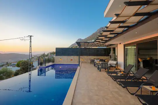 Muhafazakar Deniz Manzarali Kiralik Villa Yusef , Kalkan Kördere mevkiinde 3 yatak odali 6 kisi kapasitesindedir. Muhtesem deniz manzarasi bulunan kiralik villa lüks dizayni ile göz doldurmaktadir.Kiralik villamizin tam donanimli Amerikan mutfaginda ihtiyaç duyabileceginiz tüm ekipmanlar mevcut olup konforlu mobilyalarla dizayn edilmis salonu hizmetinizdedir. Sevdikleriniz keyifli bir tatil için Villa Yusef sizleri beklemektedir.