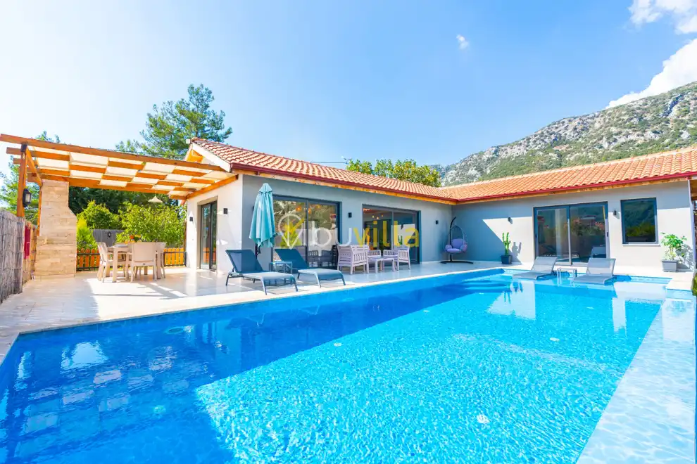 Doga Içerisinde Villa Kiralik Villa Zelyus, Kalkan Saribelen mevkiinde yer almaktadir. 2 yatak odali 4 kisiye kadar konaklama imkani saglayan villamiz doga içerisinde huzurlu bir tatil için ideal seçenektir. Amerikan mutfaginda ihtiyaç duyabileceginiz tüm ekipmanlar mevcut olup konforlu mobilyalalarla dizayn edilmis salonu hizmetinizdedir.