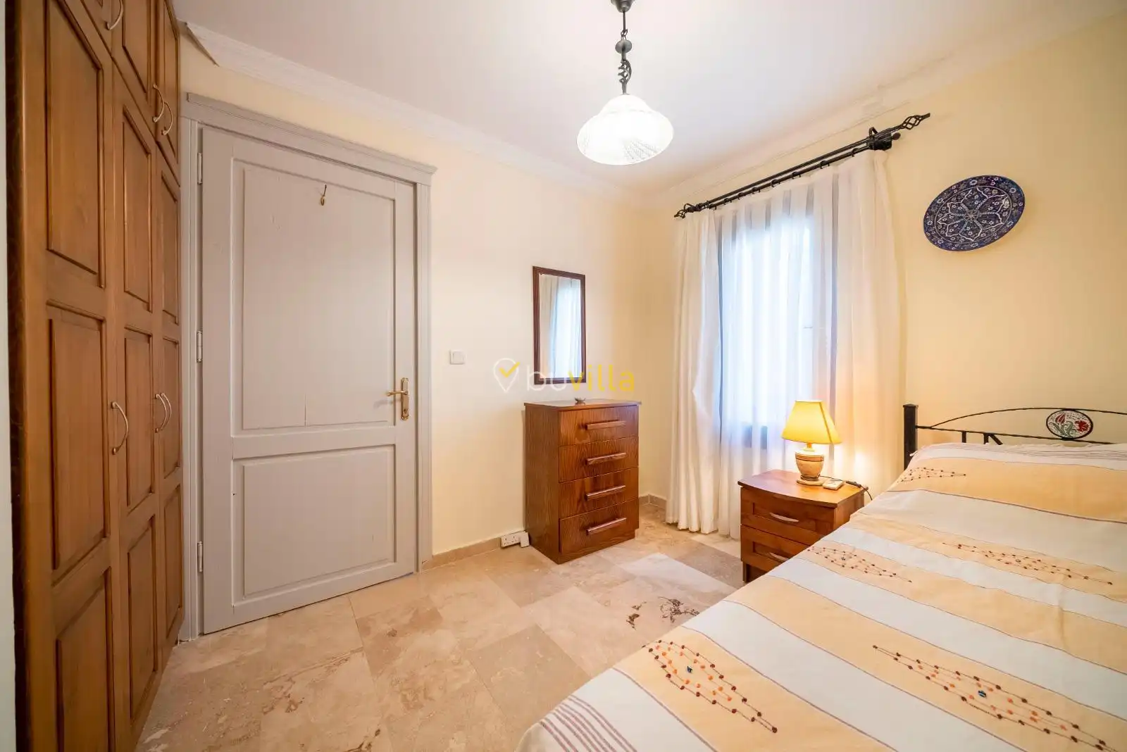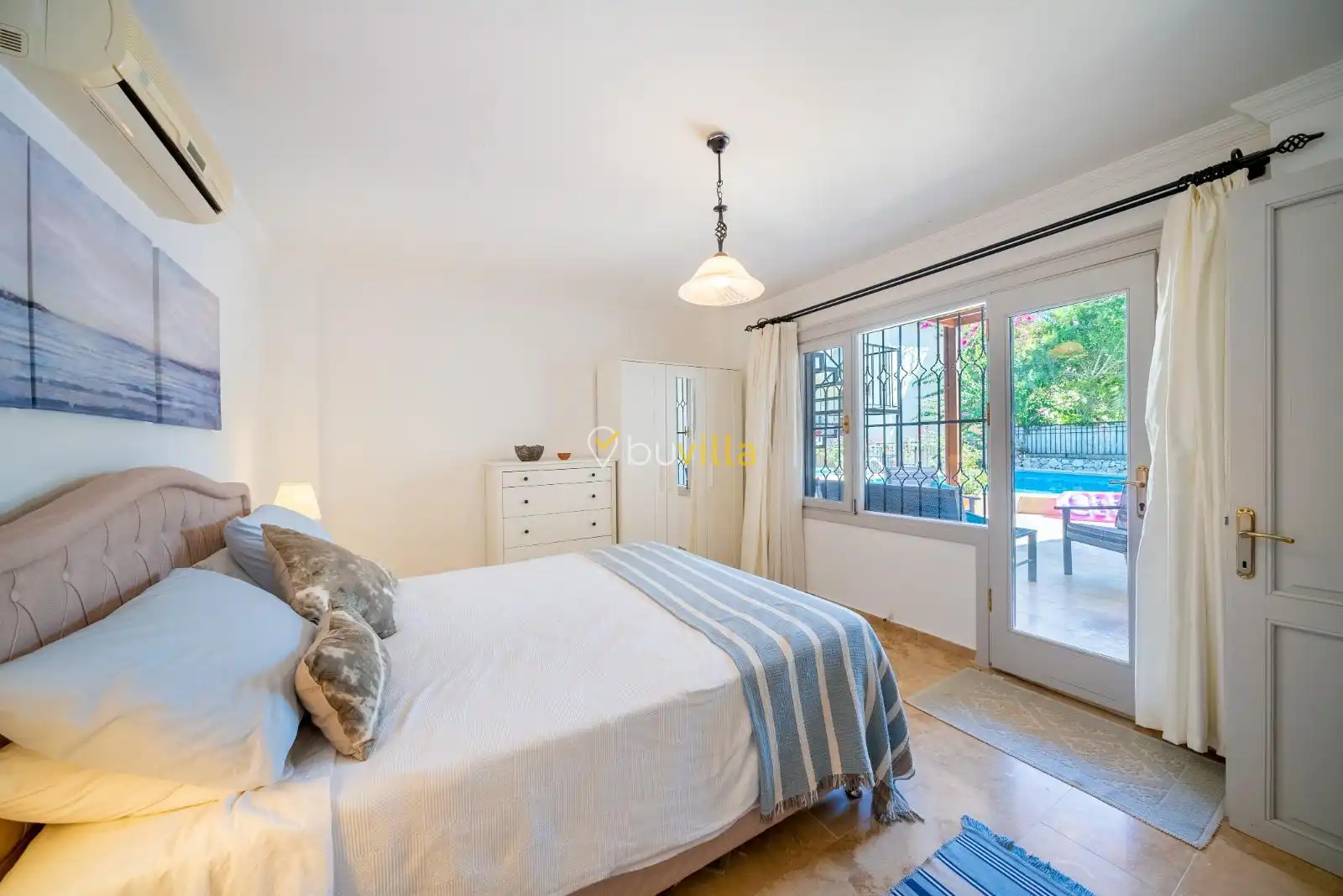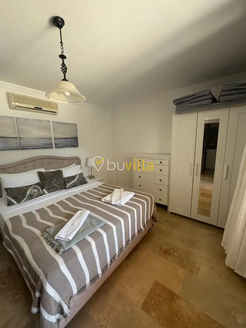 2. Yatak Odası Bir adet çift kişilik yatak, klima, elbise dolabı, komodin, makyaj masası yer almakta olup oda içerisinde özel banyo ve tuvalet bulunmaktadır.